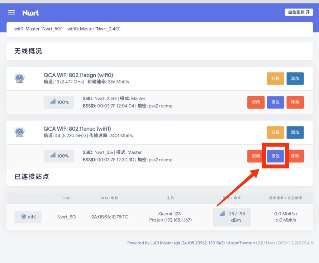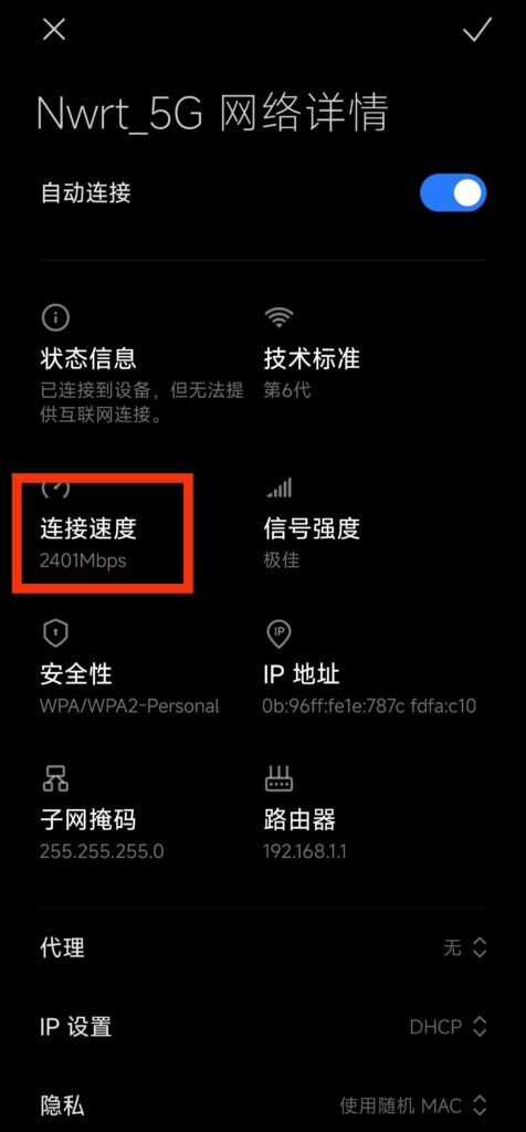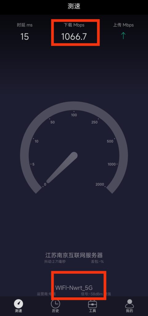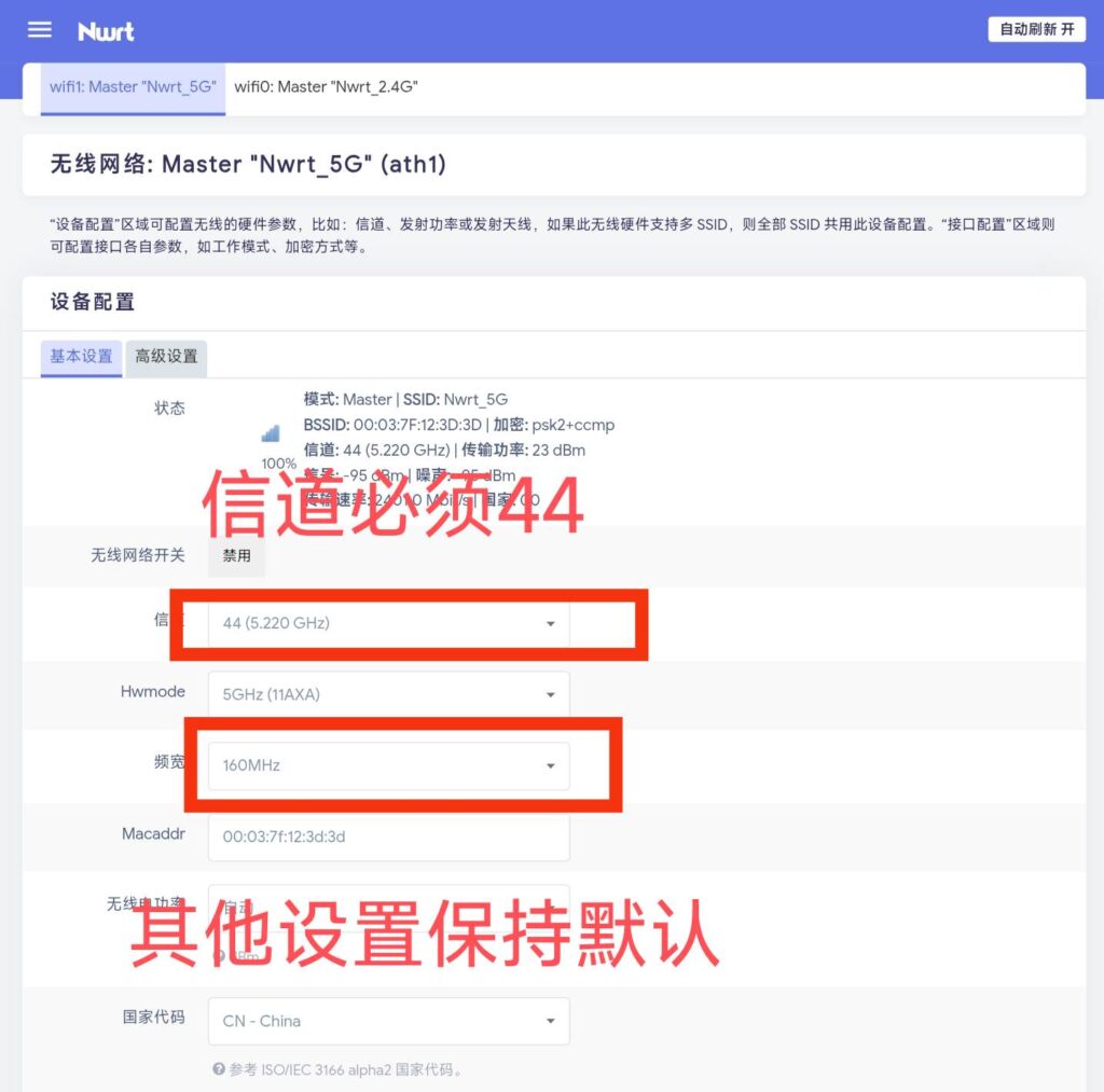 Posted inOP系统教程 OP系统5G开启160hz频宽 Posted by 作者 壹晖数码 2025年2月25日 阅读时间: < 1 分钟 登录后台,点击右边菜单,网络,无线 点击5g信号的编辑 修改信道为44,频宽修改160Mhz,其他保持默认不动,点击右下方保存并应用,等待路由器无线信号重启 重启成功后连接,手机连接5g信号,检查连接速率 测速跑满千兆 浏览量: 643 壹晖数码 壹晖数码管理员 查看所有文章 Post navigation 下一篇文章 小米CR880x系列OP系统刷回红米AX3000系统下一篇文章小米CR880x系列如何从公版刷入op系统