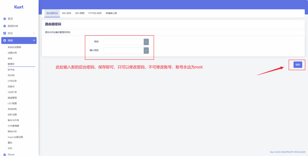 Posted inOP系统教程 OP系统如何修改后台账号 Posted by 作者 壹晖数码 2025年10月15日 阅读时间: < 1 分钟 使用默认后台账号登录后台,如下图指定路径打开 浏览量: 680 壹晖数码 壹晖数码管理员 查看所有文章 Post navigation 下一篇文章 小米路由器如何绑定米家APP(视频)下一篇文章无序路由器使用说明(V2)