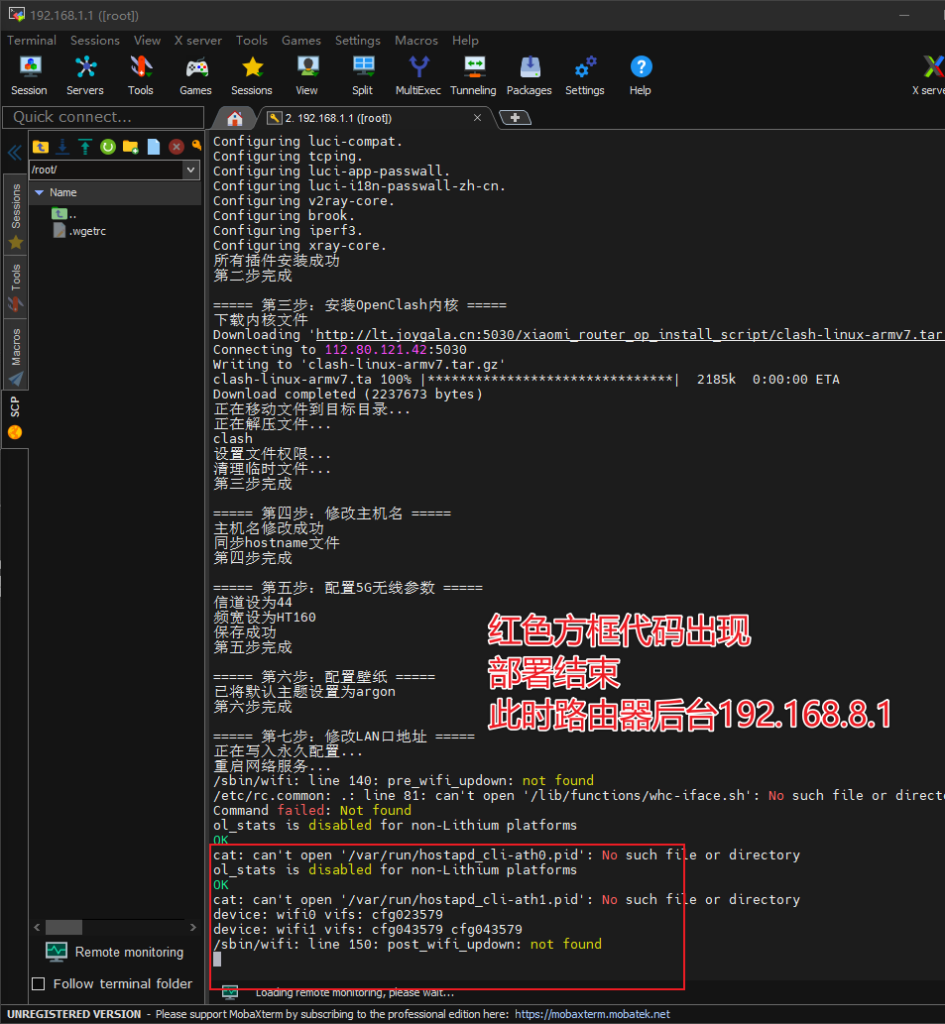 脚本部署完成后,路由器后台地址为192.168.8.1,重启路由器或电脑路由器网线重新插拔,让电脑重新获取新地址,浏览器打开192.168.8.1即可访问路由器后台。